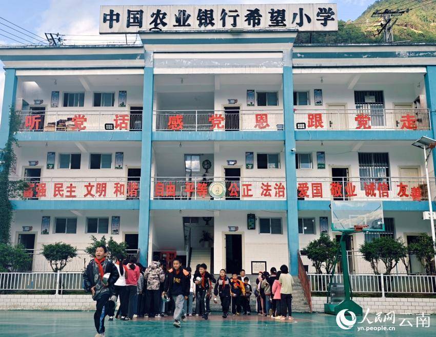 下课后,福贡县中国农业银行(腊务)希望小学的学生们排队跑向食堂。人民网 尹馨摄